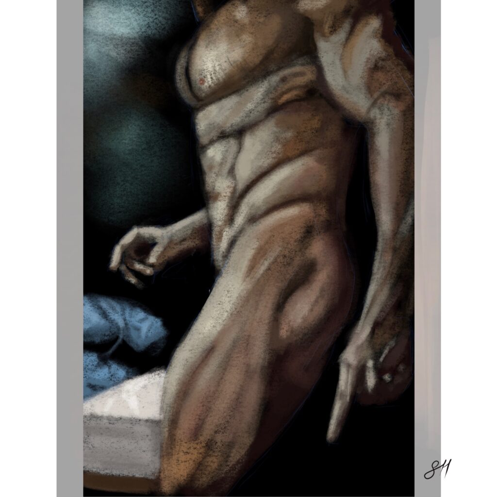 This month was again mostly digital. and my favourite subject. Men with little to no clothes on… what can I say I like the male form. The pencil drawing was me testing how I am coming along following the draw like a boss book.
