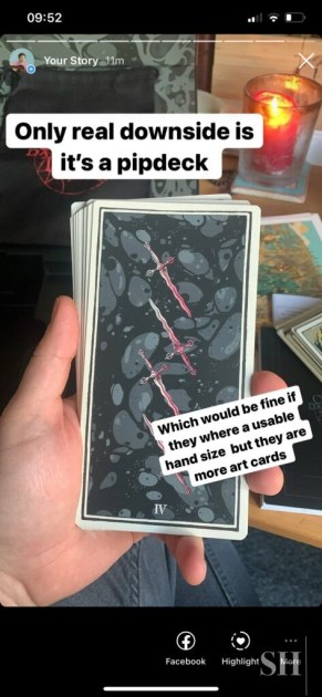 it is gorgeous. The art of the major arcana and court cards make the big cards worth the size and let you admire the detailed images, But it is a waste when we get to the pips. They are not full illustrations, just pure pips copied and pasted symbols in patterns to match the numbers not really giving any information on what the cards are about. which is a shame.
